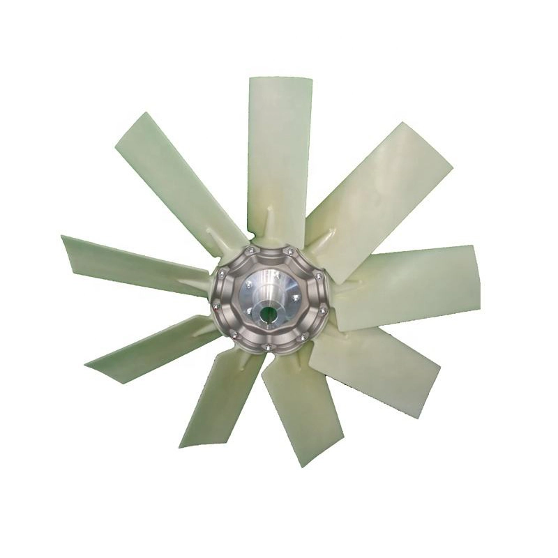 When installing the cooling fan, ensure the mounting surface and fasteners are clean and free from oil contamination. Proper torque application is important to prevent hub slippage or stress cracks. The fan should rotate freely without contacting shrouds or cooler fins. During routine maintenance, operators should check for cracks, blade deformation, buildup of dust or oil residue, and any abnormal vibration or noise. Timely replacement is recommended if signs of fatigue, imbalance, or gradual airflow reduction appear.